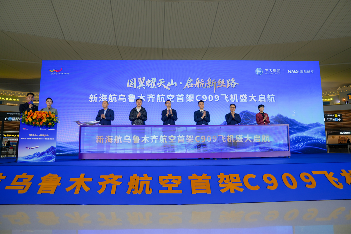 2025年12月30日上午10时,新海航航空集团旗下乌鲁木齐航空在乌鲁木齐天山国际机场举行隆重仪式,庆祝其首架国产C909飞机正式投入商业运营。随着以“国翼闪耀天山,扬帆新丝路”为主题的首飞仪式的圆满完成,标志着乌鲁木齐航空首架C909飞机在丝绸之路经济带主区域正常运营的开始,开启服务新疆、闪耀丝路的新征程。